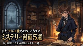 次に読む漫画に迷ったら必見!まだアニメ化されていないミステリー・謎解き漫画を5作品厳選して紹介します。ミステリという勿れ・嘘喰い・十角館の殺人など、漫画だからこそ味わえる謎解きの密度と伏線の快感が詰まった隠れた名作ばかりです。電子書籍でお得に読む方法もご案内。